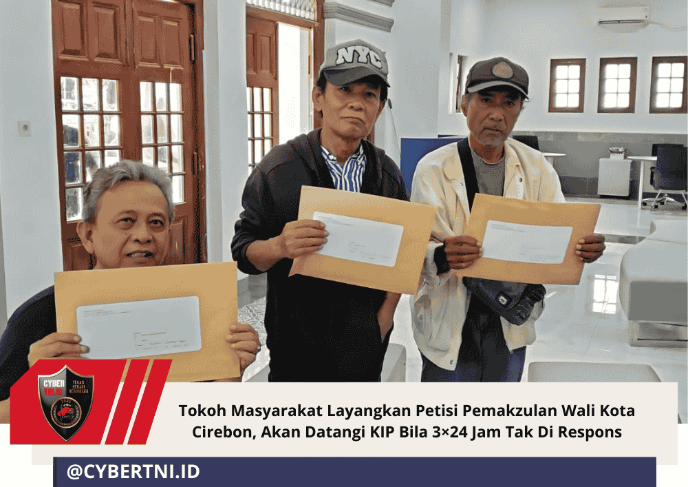 CyberTNI.id | Kota Cirebon, Selasa 25 November 2025 — Sejumlah tokoh masyarakat, akademisi, aktivis, serta berbagai elemen masyarakat Kota Cirebon resmi mengajukan Petisi Pemakzulan Wali Kota Cirebon kepada Presiden RI. Surat bernomor 01/Petisi-PM-Walikota/IX/2025, tertanggal 8 November 2025, memuat tujuh poin kritik yang dinilai cukup serius terkait kebijakan dan tata kelola pemerintahan Kota Cirebon. Petisi tersebut sebagaimana tercantum dalam dokumen yang diterima redaksi,Selasa 25/11/2025.