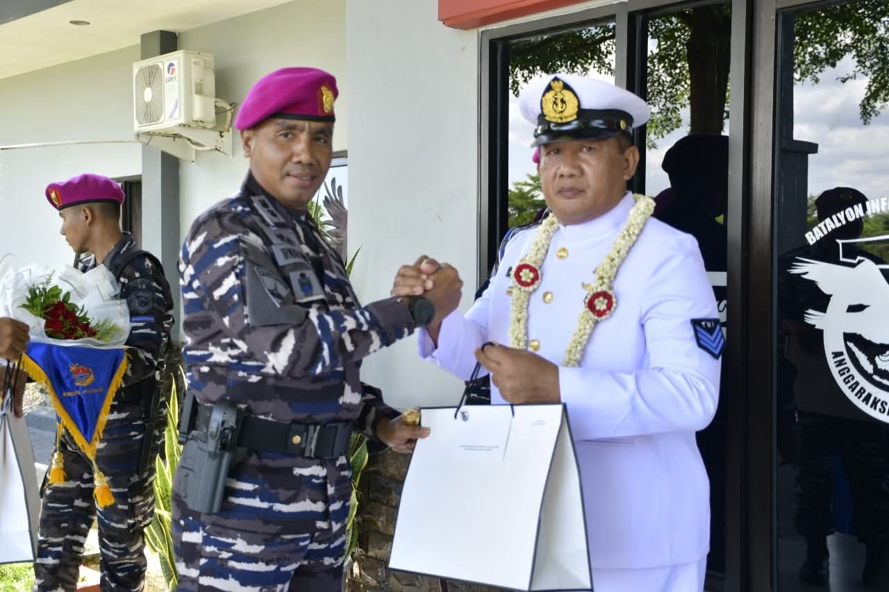 CyberTNI.id | Ketapang,Senin 15 September 2025 — TNI AL, KORMAR, Brigif 4 Marinir/ BS. Komandan Batalyon Infanteri 7 Marinir Letkol Marinir Irwan Abidin, M.Tr.Opsla., CBEI., melepas dua prajuritnya yang memasuki masa Purna Tugas (Pensiun) di Mako Yonif 7 Marinir, Ketapang, Teluk Pandan, Pesawaran. Senin (15/09/2025).