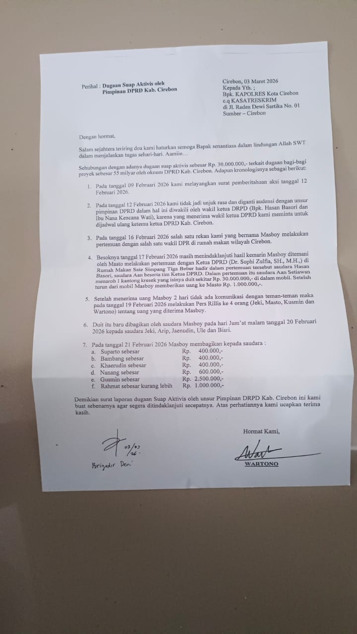 Aliansi LSM Cirebon Bergerak dengan tegas membantah tudingan penerimaan uang suap sebesar Rp30 juta dari salah satu anggota DPRD Kabupaten Cirebon. Tuduhan tersebut dinilai tidak benar, menyesatkan, dan merupakan fitnah yang merugikan nama baik organisasi serta para anggotanya.