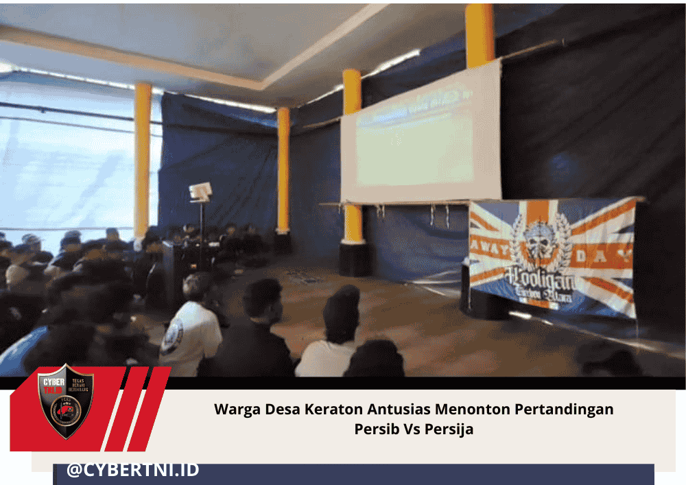 CyberTNI.Id | CIREBON , 11 Januari 2026 — Puluhan Warga Masyarakat Desa Keraton, Kecamatan Suranenggala, Kabupaten Cirebon memadati halaman kantor balai Desa, nampaknya antusias warga tersebut melihat pertandingan Sepakbola antara Persib Bandung dengan tamunya Persija.