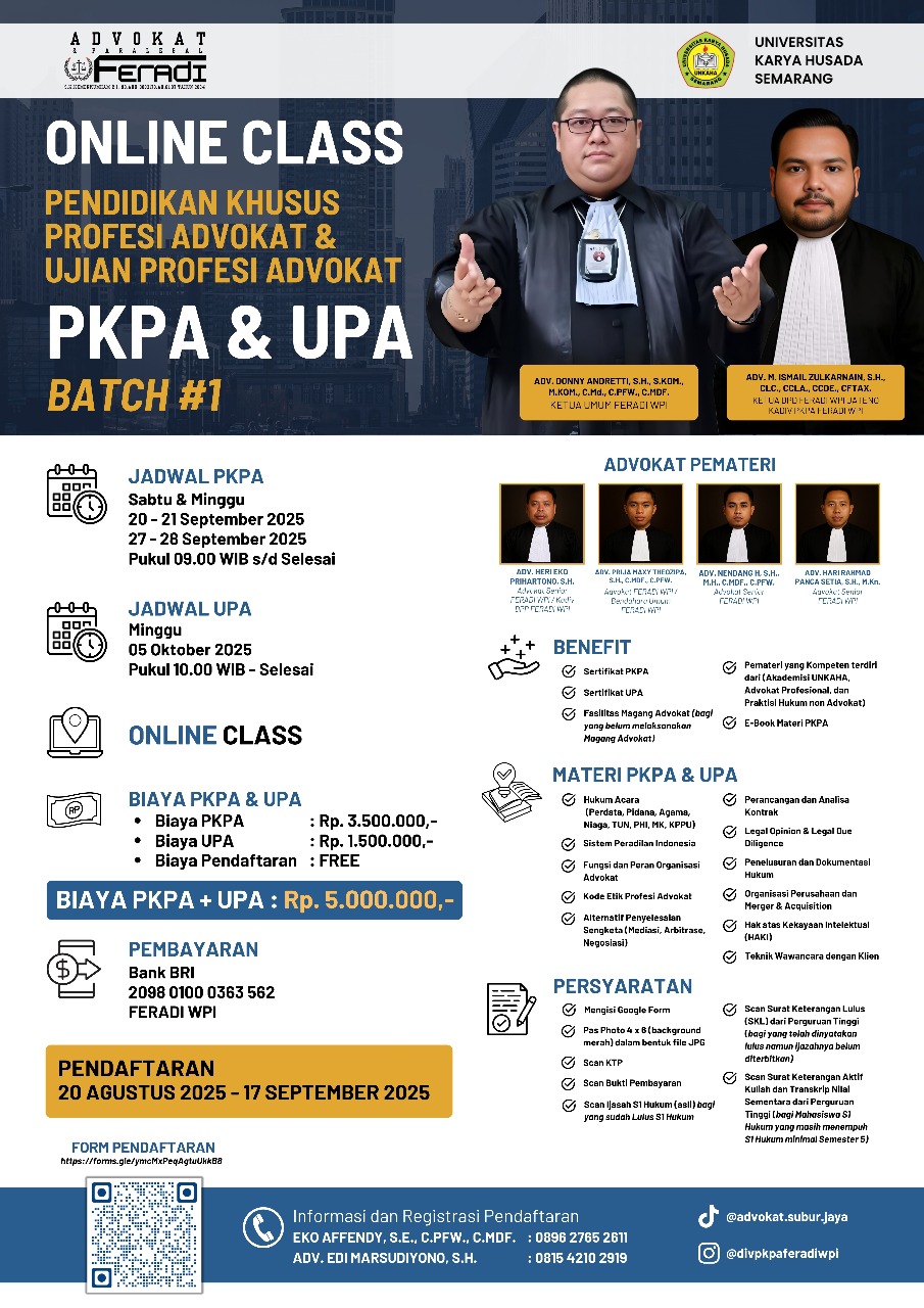 Penyelenggaraan Pendidikan Khusus Profesi Advokat (PKPA) dilaksanakan dalam waktu 2 Minggu, Minggu pertama pada Tanggal 20-21 September 2025