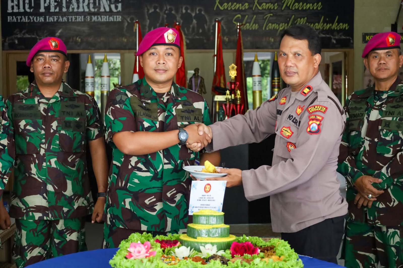 Sementara itu, Perwira Seksi Operasi Yonif 3 Marinir Mayor Marinir M Ilham mewakili Komandan Batalyon Infanteri 3 Marinir Letkol Marinir Iskandar Muda, menyampaikan ucapan terimakasih atas kejutan yang diberikan Polresta Sidoarjo.